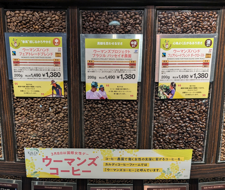 コピス吉祥寺 A館 B1「カルディ」でも 3月8日の「国際女性デー」にちなんで「ウーマンズコーヒー」を並べていました。