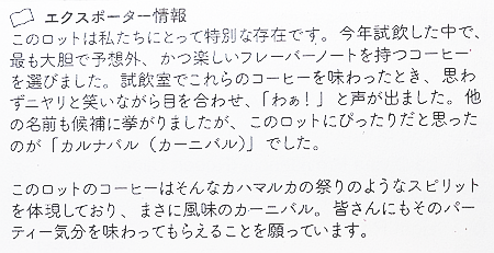 さらに過去の情報を調べていたら、「TINY PONTA COFFEE」で以前、まったく同じ名前の豆を購入していました。