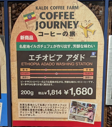 アトレ吉祥寺 B1「カルディ」で「コーヒーの旅」シリーズの新商品「エチオピア アダド」を購入しました。