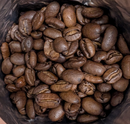 深煎りのイメージがある「マンデリン」ですが、これは中煎りですね。サイズは中くらいから少し大きめ。