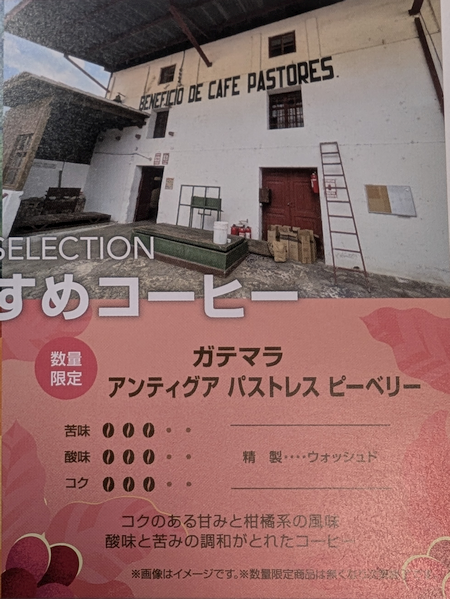 今回も「UCCカフェメルカード」の公式サイトには「ガテマラ アンティグア パストレス ピーベリー」の詳しい情報は見つかりません。かろうじて「西宮阪急」に以下の情報があるだけです。