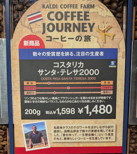 アトレ吉祥寺 B1「カルディ」で「コーヒーの旅」シリーズの新商品「コスタリカ サンタ・テレサ2000」を購入しました。