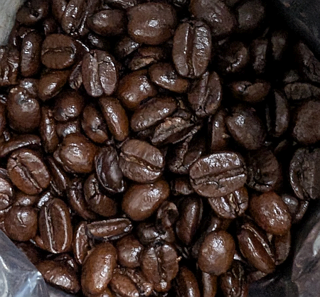 サイズは中くらいで、オイルが滲み出る深めの焙煎。