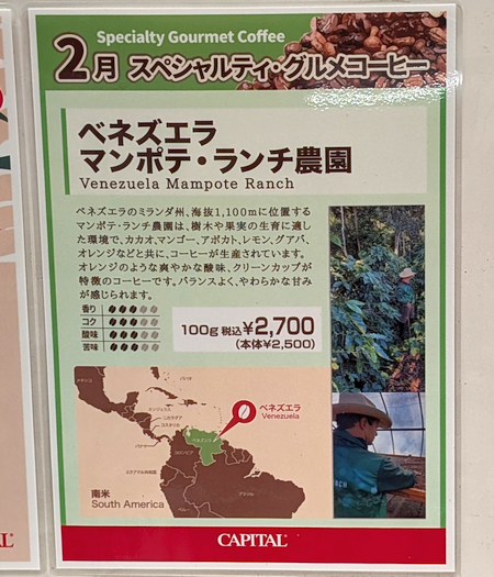 「CAPITAL COFFEE」で「ベネズエラ」産は初めて