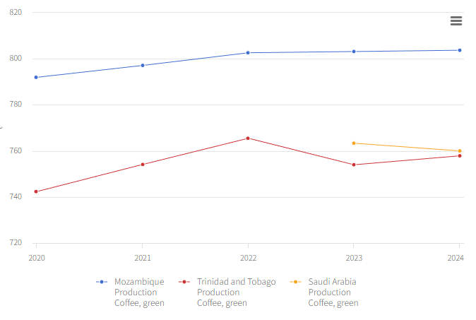 コーヒー関連サイトの多くが出典元として参照している「FAO(国際連合食糧農業機関)」の「世界のコーヒー豆 生産量」データに 2024年の情報が 2025年末に一般公開されたので、2026年1月、昨年に続きランキングを集計して考察しました。